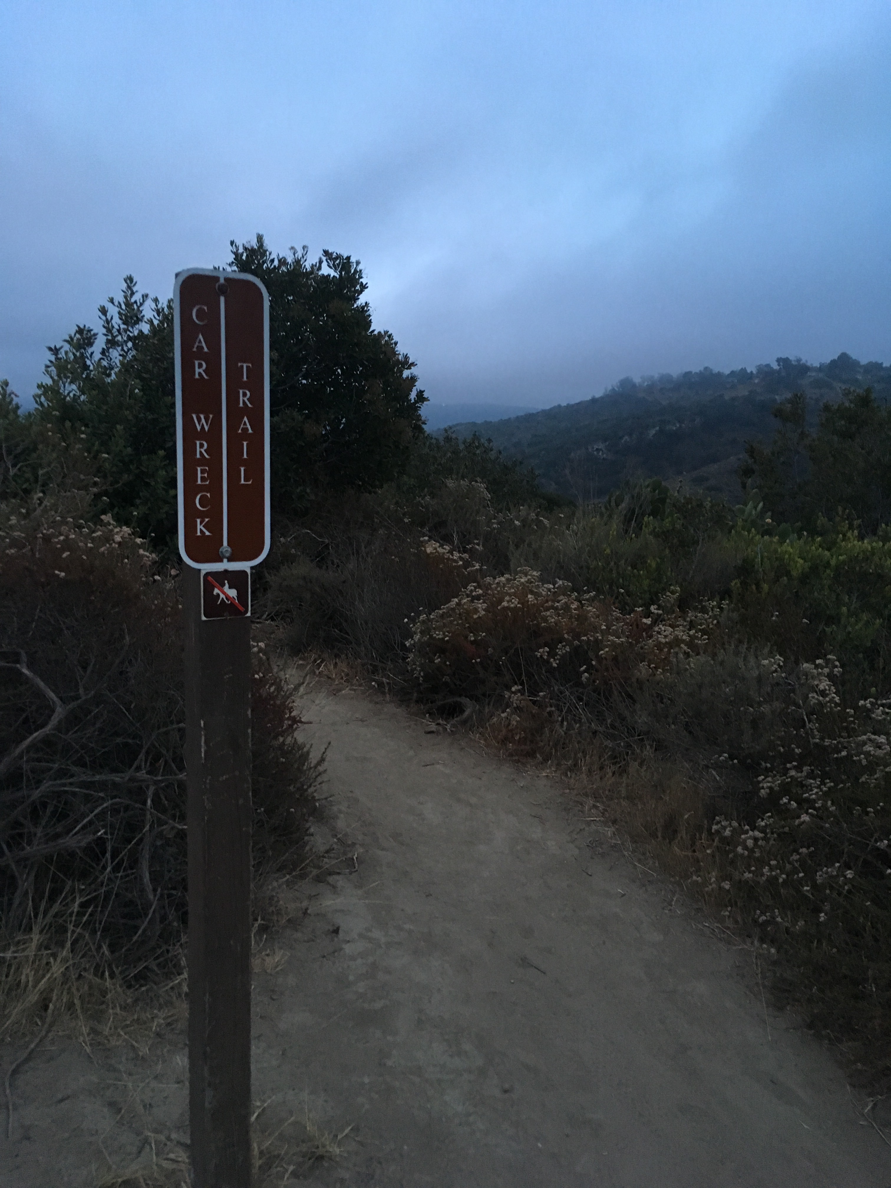 We started our hike at around 6:30pm. We had planned on starting at 5, but In-N-Out was calling us, so we just had to make a quick pit stop first. We didn’t really have a plan other than “meet at the Top of the World and go hiking” but we saw the sign for car wreck trail and thought that was an interesting sounding trail, which it was!