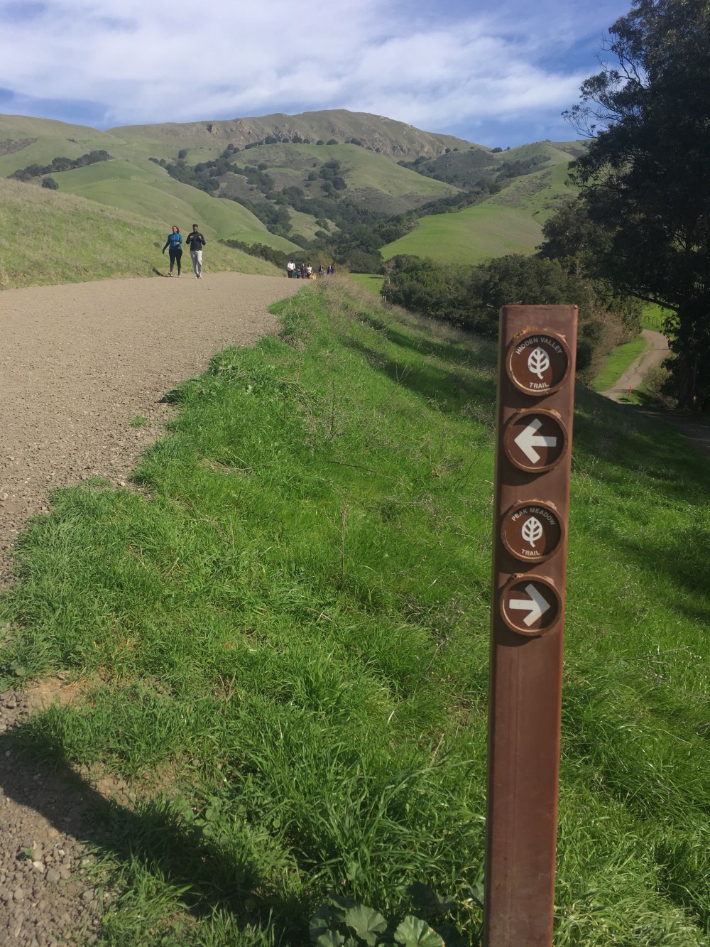 I arrived at Mission Peak around 2pm and when they say crowded, they mean crowded. I had to park almost a mile away from the trailhead, but it was a nice, paved little trek, and in my new (used) garage sale boots, I was happy to get in a bit of breaking in before I started on the trail.