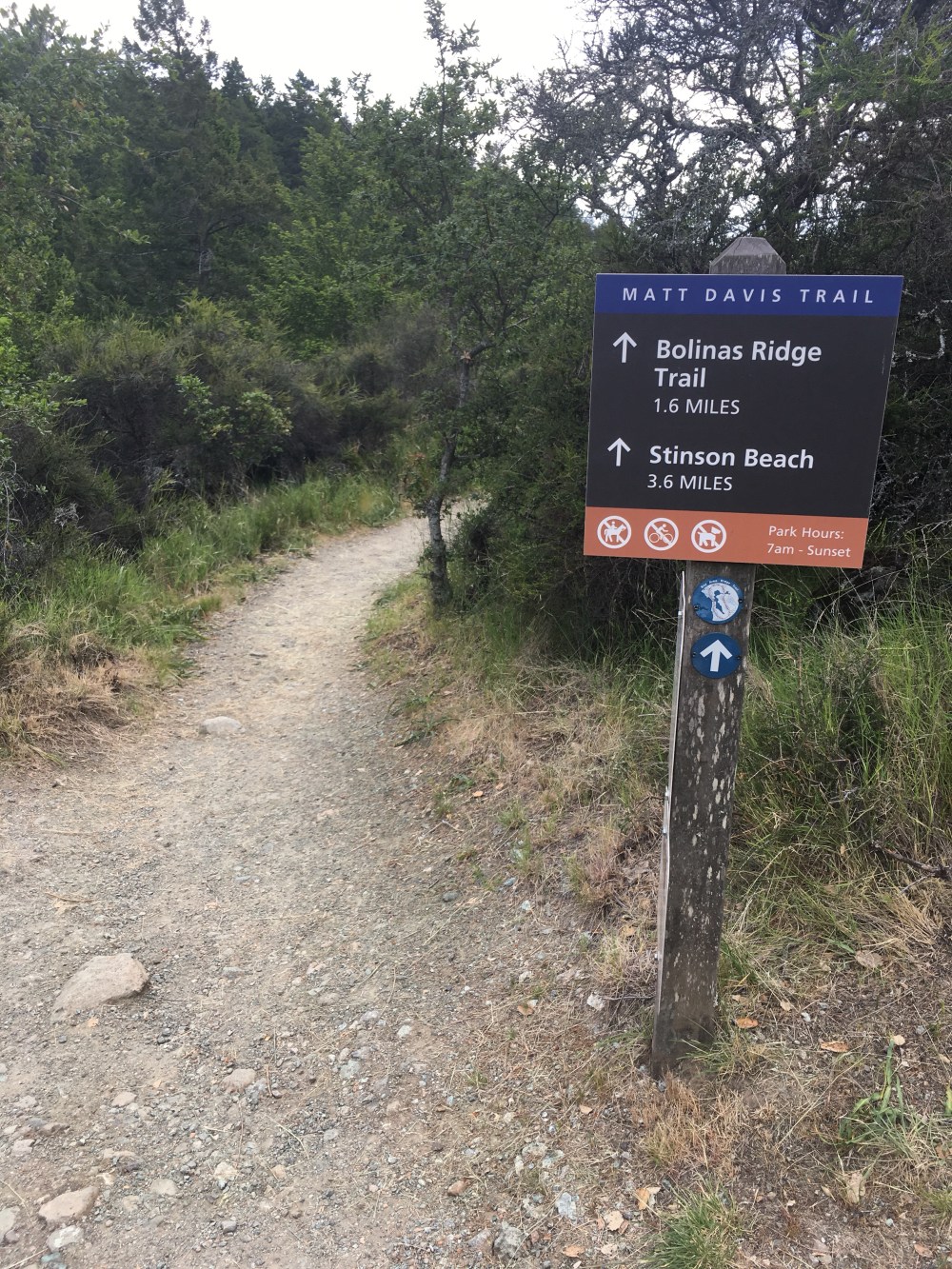 I started at the Stinson Beach trailhead, there was a dirt parking lot that still had spots open even at 10am, which was exciting! (And took away a big part of my worries for starting so late!)
