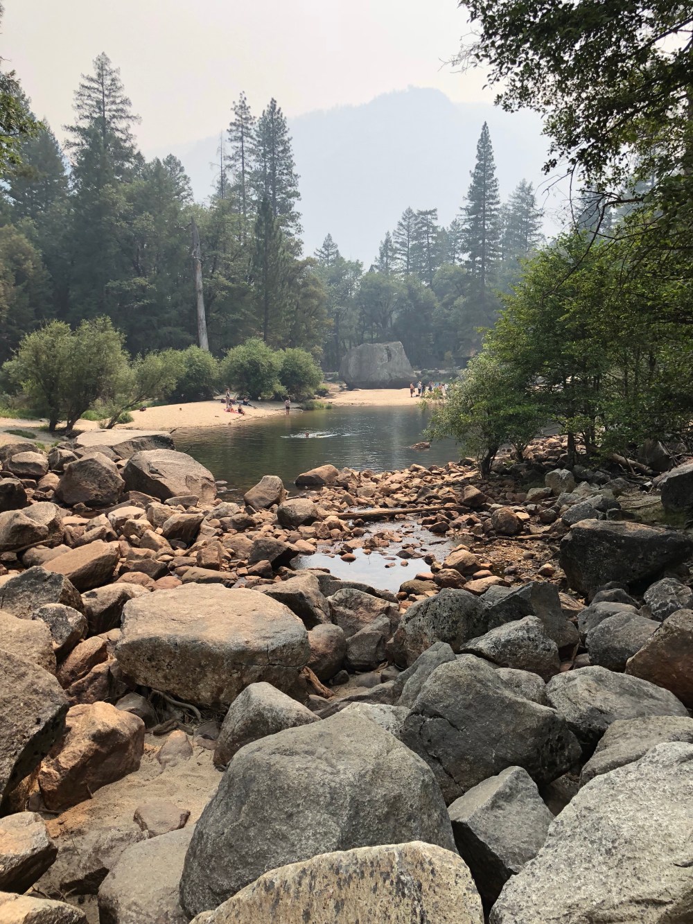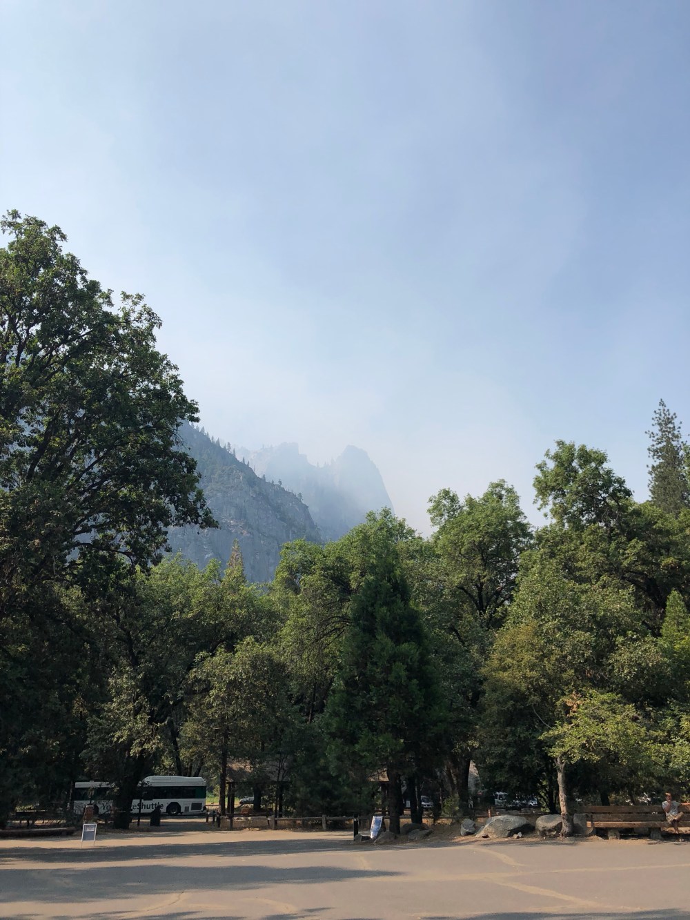 There was smoke, however! The smoke was so heavy that I could hardly see the beautiful rock formations that Yosemite Valley is so famous for. There was an RV that was driving in front of me for a while with a picture of Yosemite Valley on it though, so I still felt like I had the full experience. XD