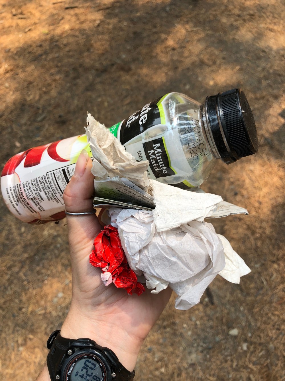 On the way back to the backpacker’s campground, I picked up all of the trash along the way and was really angry about all that I found. The part of the trail back to the campground was only about half a mile, (if even that), and there was all this trash along the trail! Trash cans are super available in the Valley and it made me really sad to see that people just didn’t care and felt like it was still okay to litter in such a beautiful place!